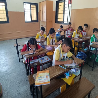 Our school has organized a colouring competition for our Jr. Kg. and Sr. Kg. students to encourage creativity, imagination and fine motor skills. The event was filled with excitement as it was the first competition of the new academic year 2026-27. Our little artists enthusiastically participated, bringing their ideas to life through vibrant colours.