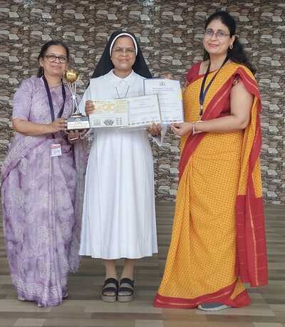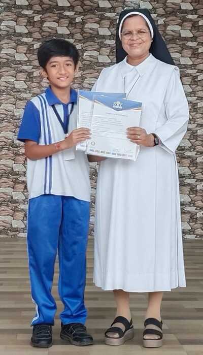 Adding to our celebration, we are delighted to share that our beloved Principal, Sr. Edwina, has been honoured by the organizers of the Science Olympiad with a trophy and a cheque in recognition of her unwavering support, visionary leadership, and tireless encouragement.