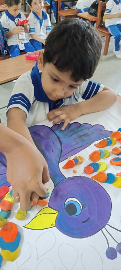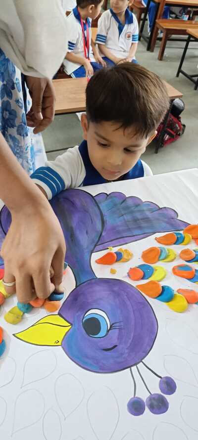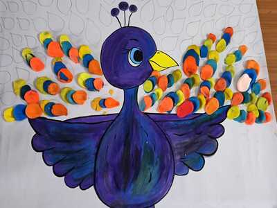 It was a beautiful picture of a peacock printed on a chart paper where the children pasted the clay on its feathers.